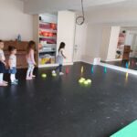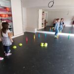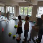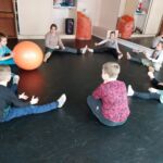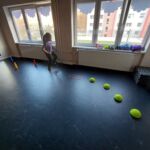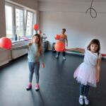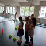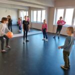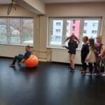 Tanečný odbor: Cvičenia s loptou v rôznych východiskových polohách a nácvik vianočného tanca – 1. a 2. ročník